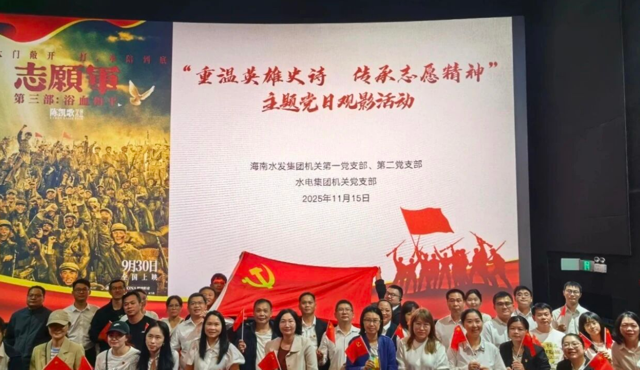 為深入貫徹落實(shí)習(xí)近平總書記關(guān)于弘揚(yáng)偉大抗戰(zhàn)精神、偉大建黨精神的重要論述,引導(dǎo)公司全體黨員干部緬懷革命先烈,傳承紅色基因。11月15日,海南水發(fā)直屬機(jī)關(guān)第一黨支部、第二黨支部聯(lián)合水電集團(tuán)機(jī)關(guān)黨支部開展主題黨日觀影活動,旨在從光影中重溫英雄史詩,從偉大抗美援朝精神中汲取奮進(jìn)力量,以黨建引領(lǐng)水利事業(yè)提質(zhì)增效,為企業(yè)高質(zhì)量發(fā)展注入紅色動能。